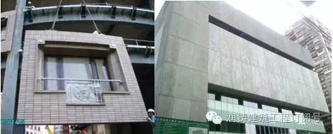石材幕墙通常有现场干挂、湿贴或预嵌于预制混凝土墙板构件的面层,干挂石材幕墙也多为饰面板层,室内侧一般需设置背衬墙体,墙体上加保温板。湿贴的石材幕墙,基墙为混凝土墙或砌块砌体墙,预嵌石材预制混凝土墙板为饰面与混凝土墙一体成形装配式外墙。