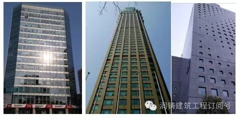 (a)玻璃幕墙 (b)玻璃与铝板幕墙(c)石材幕墙