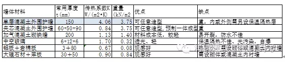 外围护墙通常设计厚度及其主要特点归纳如下表1,可根据建筑设计要求,建筑环境等因素进行选用。
