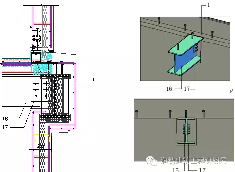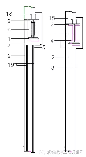 1钢梁 2 墙板内叶 3 墙板外叶 4 保温板材 18 现浇墙墩 19 防水构造