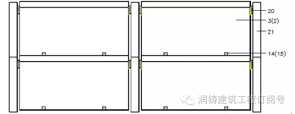 2墙板内叶 3 墙板外叶 14 墙内墙板接合铁件 15 梁上墙板接合铁件 20 梁端连接件 21 钢柱