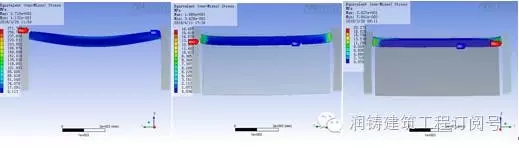 图19纯梁柱框架中的钢柱应力最大为65.0MPa(100%),其次是单层墙板钢梁墙一体框架的钢柱应力55.91MPa,为纯梁柱框架柱的85.9%,最小是夹芯墙梁墙一体框架柱应力54.07Mpa,为纯梁柱框架柱的83.2%。
