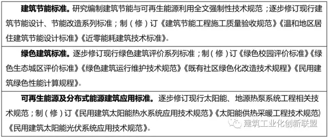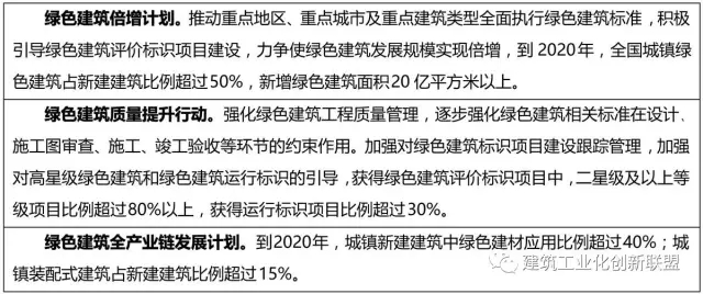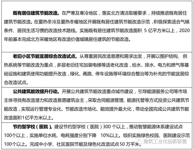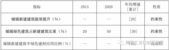 具体目标是:到 2020 年,城镇新建建筑能效水平比装配式研发 2015 年提升 20%,部分地区及建筑门窗等关键部位建筑节能标准达到或接近国际现阶段先进水平。城镇新建建筑中绿色建筑面积比重超过 50%,绿色建材应用比重超过 40%。完成既有居住建筑节能改造面积 5 亿平方米以上,公共建筑节能改造1 亿平方米,全国城镇既有居住建筑中节能建筑所占比例超 过 60%。城镇可再生能源替代民用建筑常规能源消耗比重超过 6%。经济发达地区及重点发展区域农村建筑节能取得突破,采用节能措施比例超过 10%。