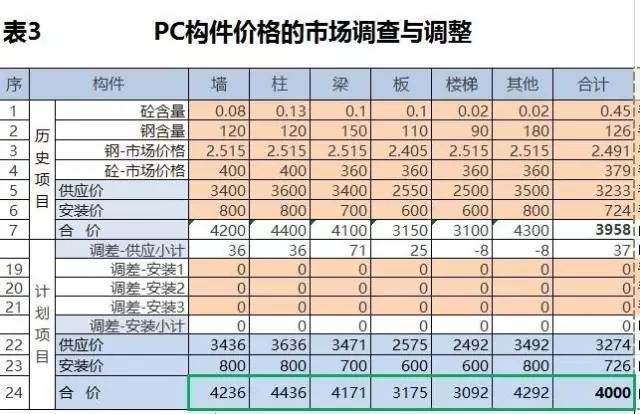(3)市场调查收集PC构件供应和安装的市场价格;