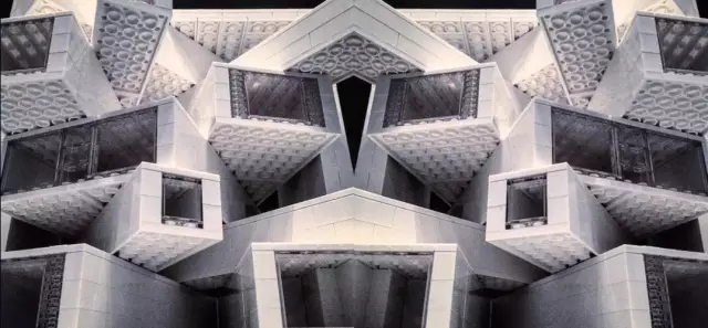 最上面的2×4 的巨型LEGO模块就如拱顶石(keystone)就位过程,它是21个堆叠体块之一。