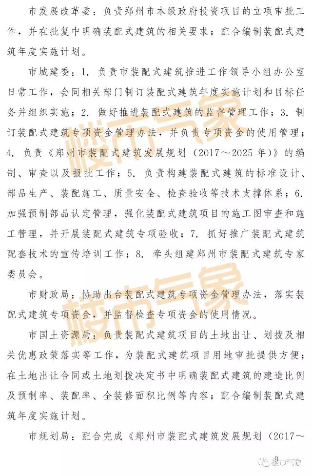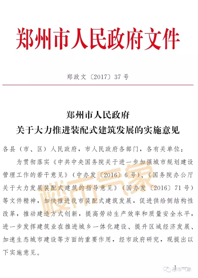 《实施意见》提出,以市内五区(金水区、二七区、中原区、管城回族区、惠济区)和郑州航空港区、郑东新区、郑州经开区、郑州高新区为装配式建筑重点推进区域,荥阳市、新密市、新郑市、登封市、上街区和中牟县建成区以及农村地区为装配式建筑鼓励推进区域。