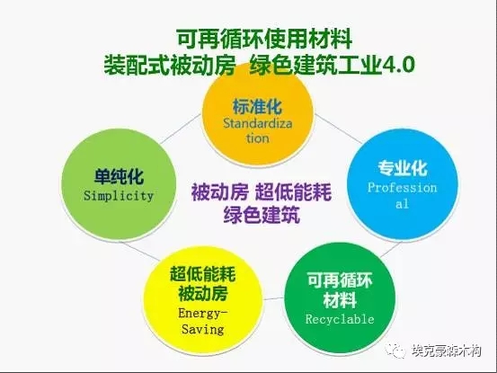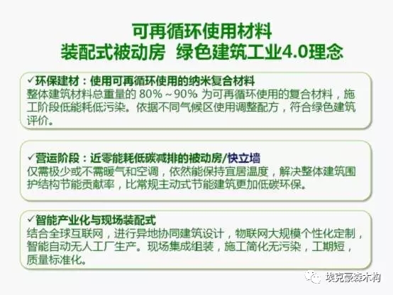 装配式被动房符合绿色发展理念,超低能耗特点,可再循环使用材料的应用,绿色建筑工业4.0的趋势