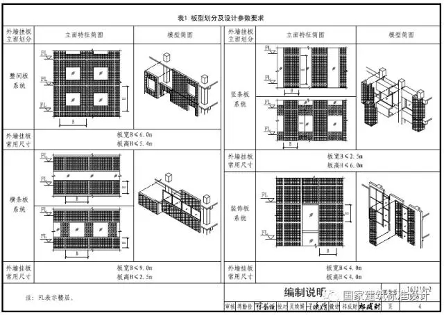 图集中的外墙挂板材料采用普通混凝土或轻骨料混凝土,饰面包括面砖饰面、石材饰面、涂料饰面、装饰混凝土饰面等类型,要求饰面材料具有良好的耐久性、安全性和环保性。适用于抗震设防烈度≤8度地区装配在钢结构或混凝土结构上的非承重外墙围护挂板或装饰板。