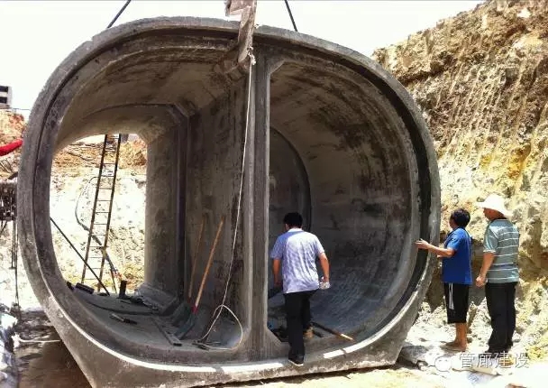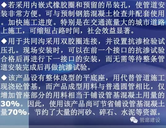 特点:砼制多弧涵管;“D”型转角拼装综合管廊