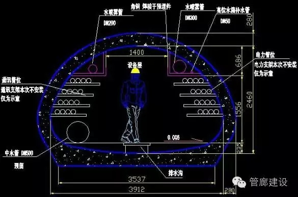 特点:砼制多弧涵管;“S”曲线下穿的预制拼装管廊