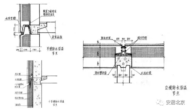 自防水:竖缝现浇混凝土浇筑,结构自防水。构造防水:水平缝反槛构造,防止水流入室内。材料防水:外墙缝均用“改良硅酮胶”做材料防水