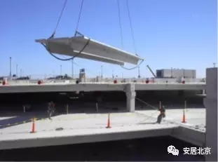 只有在大城市人口稠密区存在一些多、高层的集合式住宅、公寓、酒店大量使用装配式混凝土结构技术,主体结构体系为“装配式框架(或钢结构框架)+预制夹心保温外墙挂板+预制空心楼板”,一般先进行主体施工,后进行挂板安装的施工方法。在美国大量的立体停车库、厂房、写字楼采用装配式结构,大跨度预应力空心楼板和双T 板的应用非常普及。