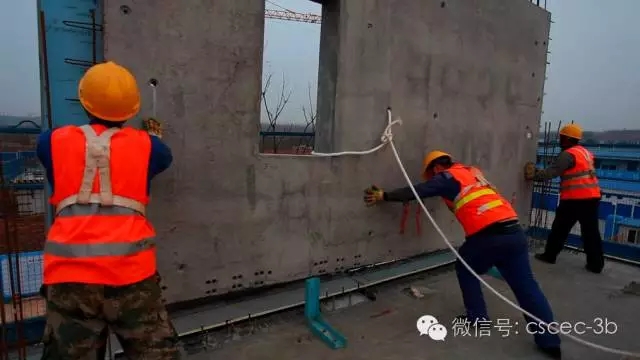 然后绑扎竖向现浇部分的钢筋、支设模板,对,没错,工业化建筑也要用到现浇,这样才能把房子的各个零件粘结起来,这中间用到的混凝土强度要远远高于一般的混凝土,所以整栋房子非常结实!