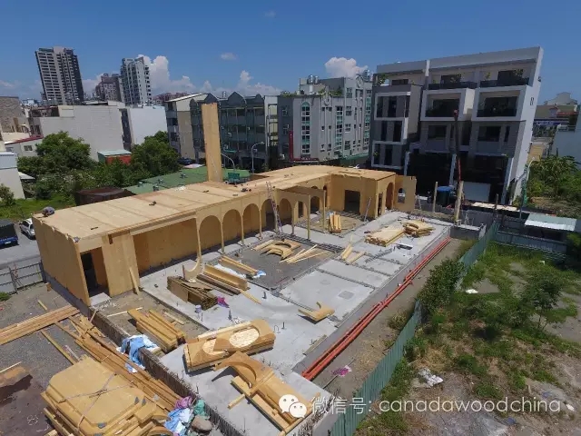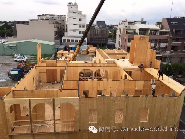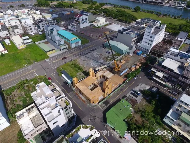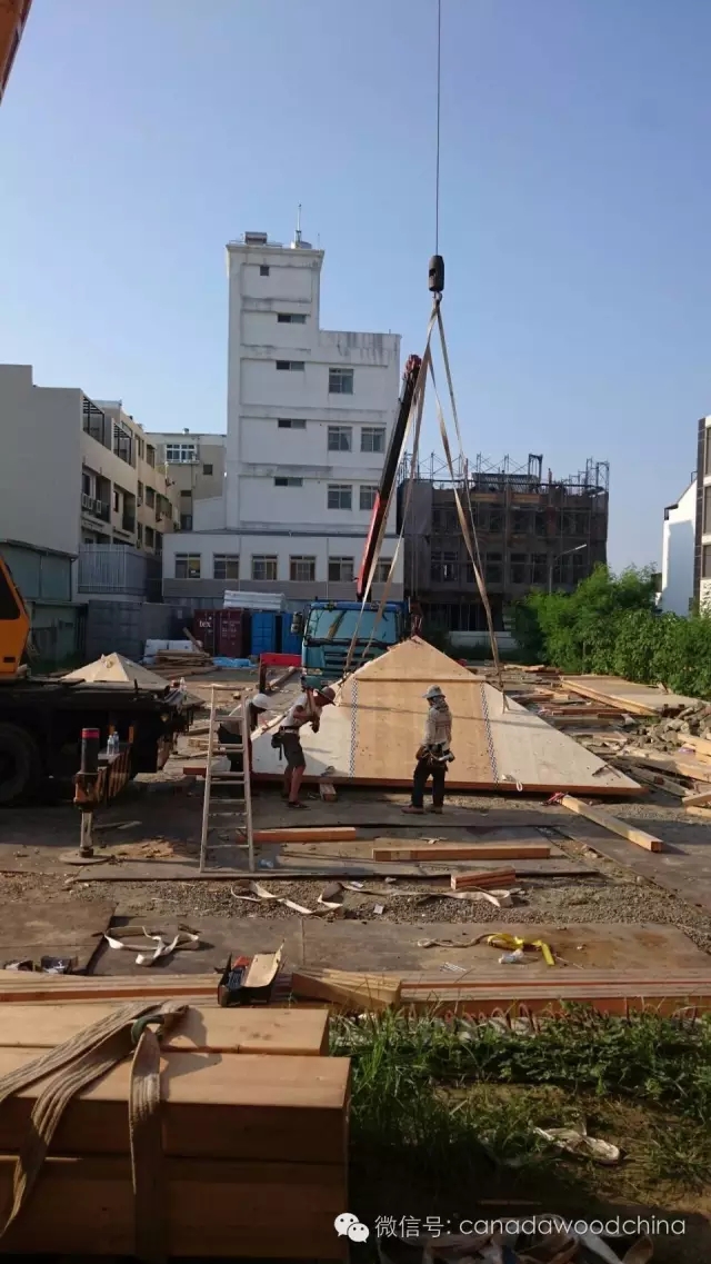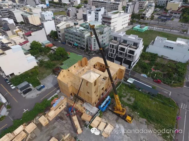 在安平Istana的四百多坪的CLT木构建筑,负责施工的森科 WoodTek只用了5个工人,仅仅38天,结构体就组装完成,施工比传统RC构造更精准(只有1~2mm的误差),施工更干净而且迅速。这个结构体才组装完成,刚好9/14晚就经过超级台风莫兰蒂的风雨测试。未安装门窗的木构建筑最怕台风uplift 的力量把屋顶掀开,但这个结构那晚通过了狂风暴雨的考验。