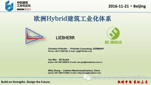 21日,中欧建筑工业化论坛在京隆重开幕。论坛主旨为:绿色建材、绿色建筑、低碳、应对气候变化及城市可持续、建筑工业化。利勃海尔机械(徐州)有限公司总经理张伟宏出席论坛并作主旨报告“欧洲Hybrid建筑工业化体系”,本网现全文刊载,以期与读者共享专家观点,促进我国装配式建筑发展。