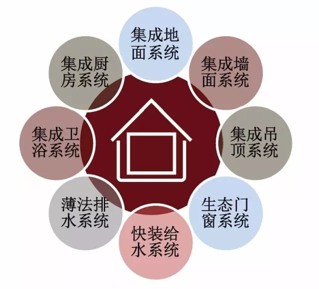 在国家大力推进建筑工业化装配式建筑的今天,大家关注的重装配式结构点也从原来的结构产业化方面慢慢拓展到了内装工业化方面,一套成熟的装配式装修整体解决方案包括八大系统:集成卫浴系统、集成厨房系统、集成地面系统、集成墙面系统、集成吊顶系统、生态门窗系统、快装给水系统及薄法排水系统。