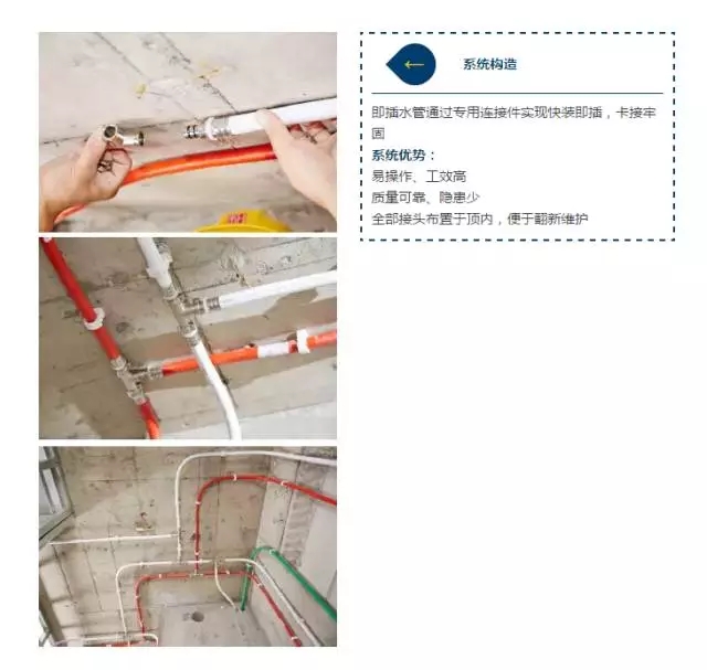 同层排水规避排水时下层噪音,提升居住体验质量;PP材质耐高温耐腐蚀性提高;薄法设计;空间利用率高;胶圈承插施工易操作、隐患少;便于在公区集中检修,维修时不干扰下层住户生。