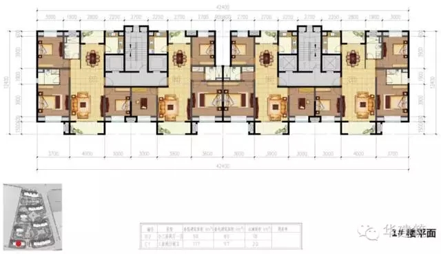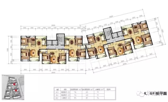 小区住宅楼层数主要为16~18层,标准层层高2.95m。户型以一梯四户和一梯两户为主,每单元设2台电梯和1部疏散楼梯,地下一层为机动车与非机动车库及设备用房。