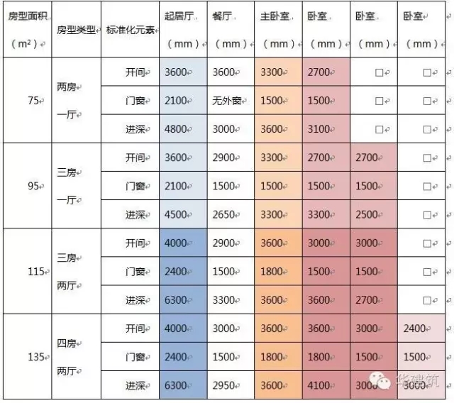 项目设计围绕基于工业化建筑的标准模数系列,形成标准化的功能模块,设计了标准的房间开间模数,标准的门窗模数,标准的门窗洞口尺寸,标准的交通核模块,标准的厨卫布置模块,并将这些标准化的建筑功能模块组合成标准的住宅单元,各功能模块的尺寸详见下表。