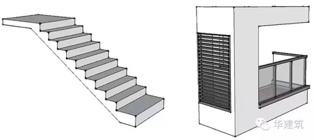 ▲标准化的楼梯构件(左)与标准化的阳台构件(右)