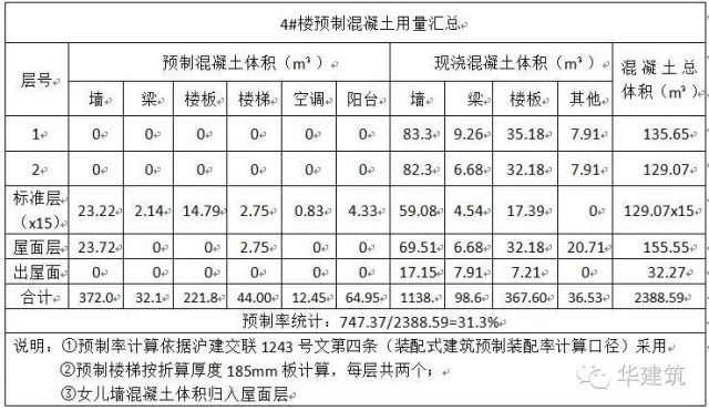 表:单体预制率统计表