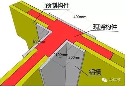 为进一步提高装配式混凝土结构的经济性,考虑到现浇部分的结构边缘构件标准化,所有一字型构件尺寸为200*400,L型构件尺寸统一为500*500,丁字型构件尺寸为400*400,节约了铝模板的品种和数量,有效的减少了装配式建筑的造价。