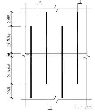 ②叠合板式剪力墙预制墙板的竖向接缝与水平接缝处,布置连接钢筋,且连接钢筋应通过计算确定;连接钢筋的直径和截面积分别不应小于预制墙板内配置的竖向、水平分布钢筋。竖向连接钢筋与预制墙板内纵筋搭接长度不应小于1.2la(laE),上下端头错开距离不应小于500mm。