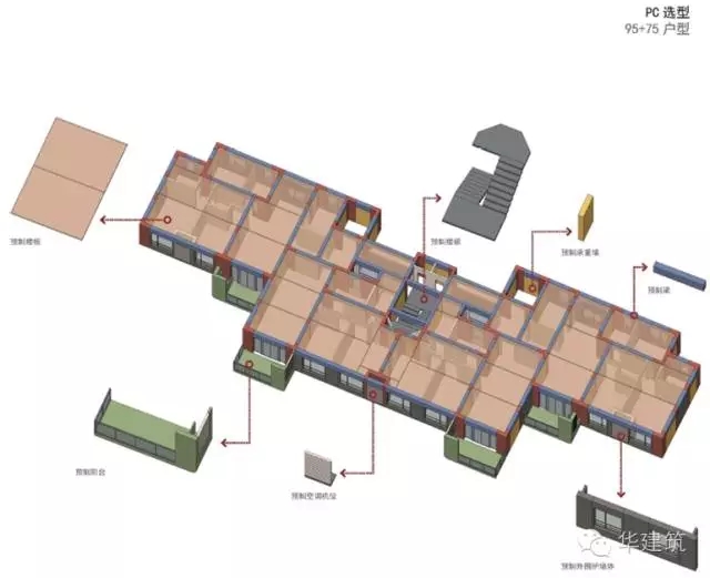 根据标准化的模块,再进一步拆分标准化的结构构件,形成标准化的楼梯构件、标准化的空调板构件、标准化的阳台构件,大大减少结构构件数量,为建筑规模化生产提供了基础,并显著提高构配件的生产效率,有效地减少材料浪费,节约资源,节能降耗。