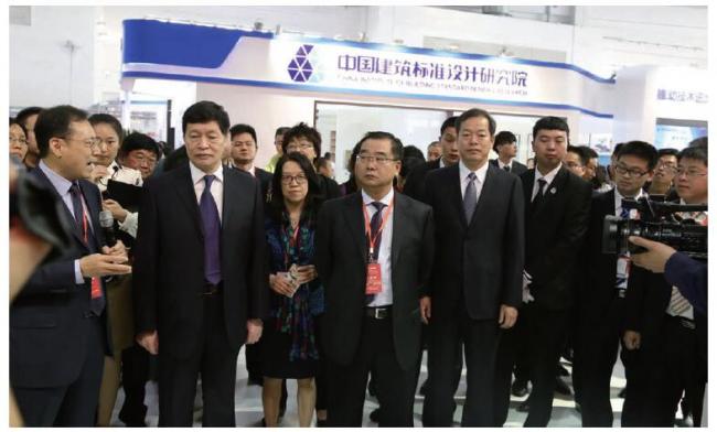 住房和城乡建设部总工程师陈宜明、建筑与节能科技司司长苏蕴山、部科技与装配式研发产业化发展中心主任冯忠华、副主任文林峰参观住博会展馆
