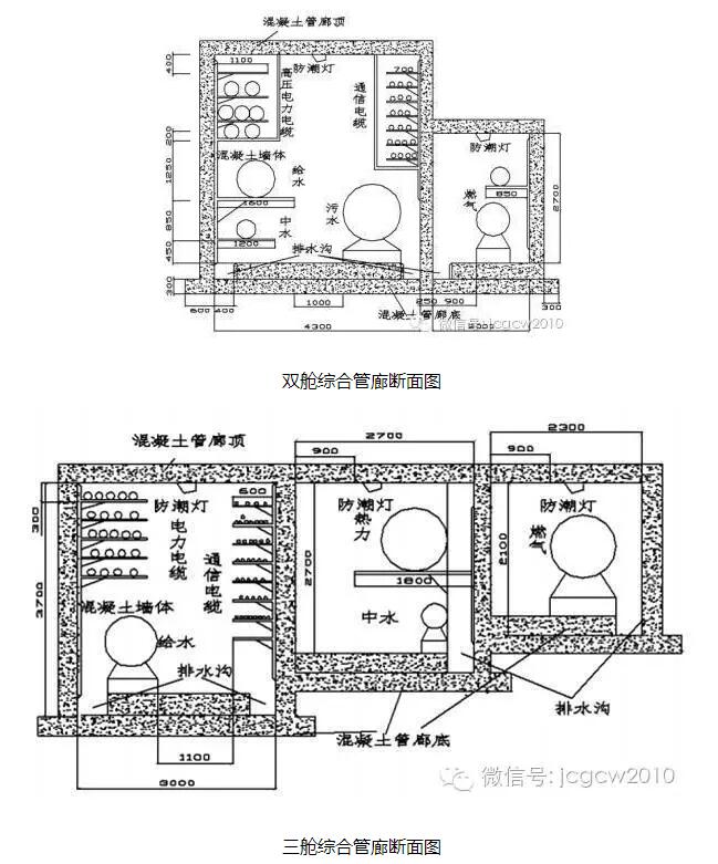 断面形式:大多为矩形结构和圆形结构,一般是根据纳入的市政管线种类、数量、施工方法、地下空间情况和当地的经济情况等进行设计。