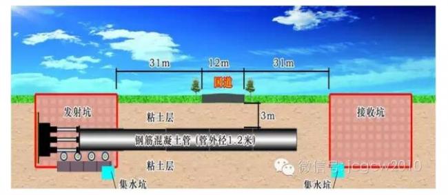顶管施工是继盾构施工之后而发展起来的一种地下管道施工方法,它不需要开挖面层,并且能够穿越公路、铁道、河川、地面建筑物、地下构筑物以及各种地下管线等。顶管施工借助于主顶油缸及管道间中继间等的推力,把工具管或掘进机从工作井内穿过土层一直推到接收井内吊起。与此同时,也就把紧随工具管或掘进机后的管道埋设在两井之间,以期实现非开挖敷设地下管廊的施工方法。