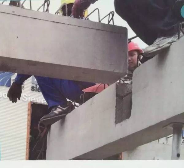 以预制框架结构为例,一层施工完毕后,先吊装上一层柱子,接着上主梁、次梁、楼板。预制构件吊装全部结束后,就开始绑扎连接部位钢筋,最后进行节点和梁板现浇层的浇筑。