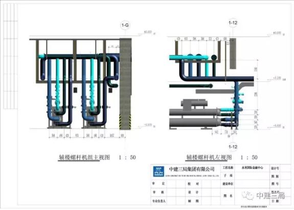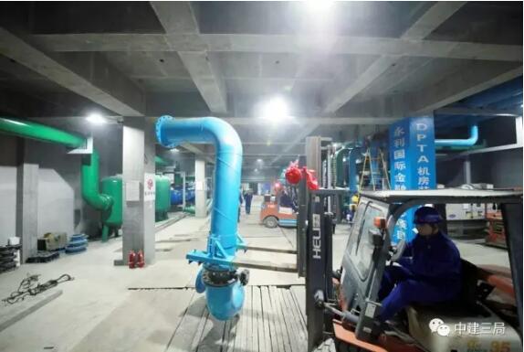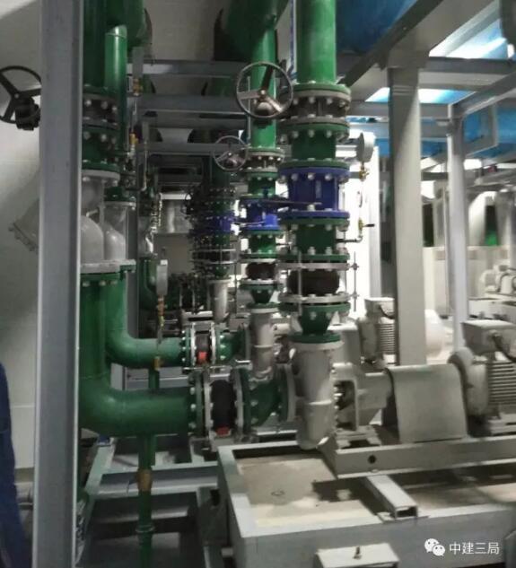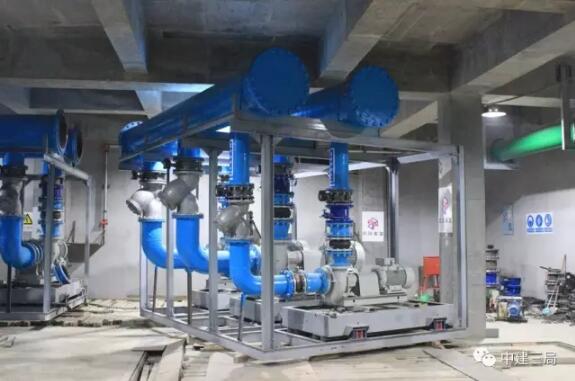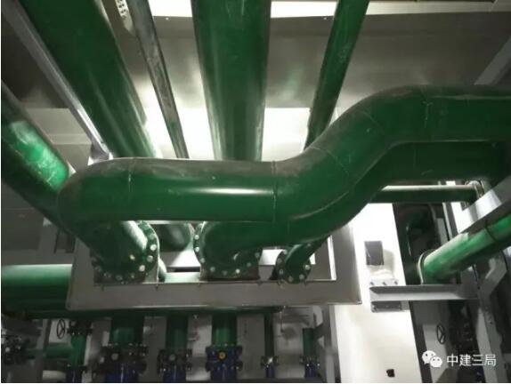 具体来说,为了保证安装精度,项目通过活套法兰校正泵组间安装误差,实现严密连接;现场人员对照装配图纸,通过扫描二维码获得各冷机立管相应信息,将其运输至相应的冷机前方对管安装;管道支架整体固定提升,通过特制插销,连接支架与预埋在土建结构上的钢板。