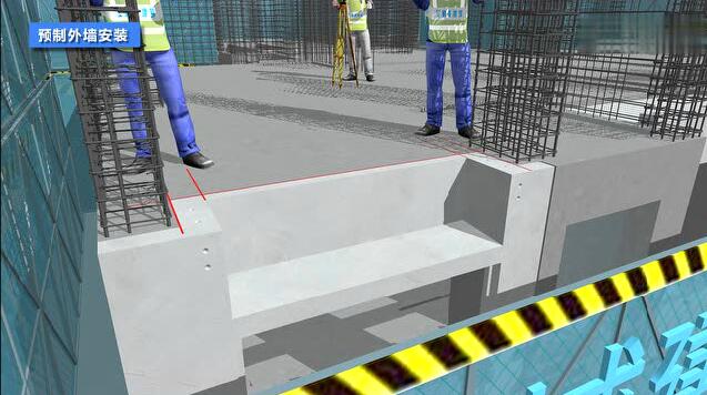 1、放线,在楼面板上根据定位轴线放置预制外墙的定位边线;
