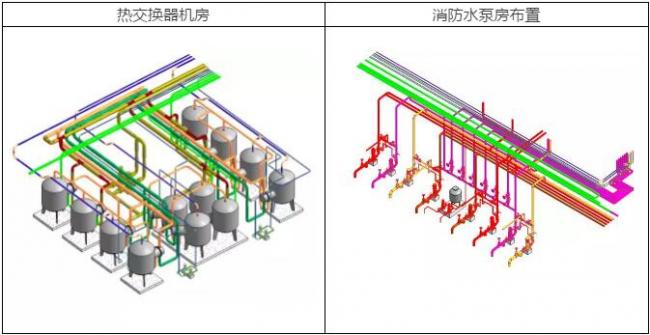 通过BIM模型的创建,合理优化布局,对管线和设备位置进行综合排布,确保设备管线排列整齐,成行成排,部件标高、朝向一致。