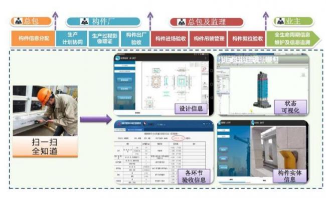 装配式建筑搭起来后,还要进行管理。中粮壹号公馆项目的6000个预制构件都有自己的专属“身份证”。内置的RFID芯片,用智能设备“扫一扫”就能看到预制构件从石子、混凝土,到变成一片墙,由谁生产何时生产、由谁吊装、何时检验等一系列生产、储运、安装、验收信息,可视化平台对此进行全过程管理,如同一条看不见的流水线,建筑任何一个环节出问题,工作人员可以迅速追责。