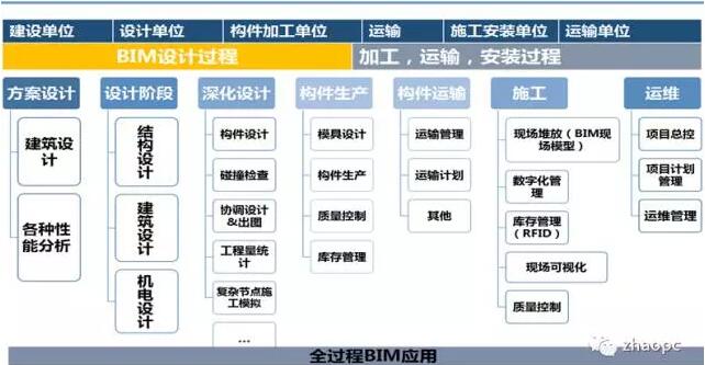 装配式建筑核心是“集成”,BIM方法是“集成”的主线。这条主线串联起设计、生产、施工、装修和管理全过程,服务于设计、建设、运维、拆除的全生命周期。