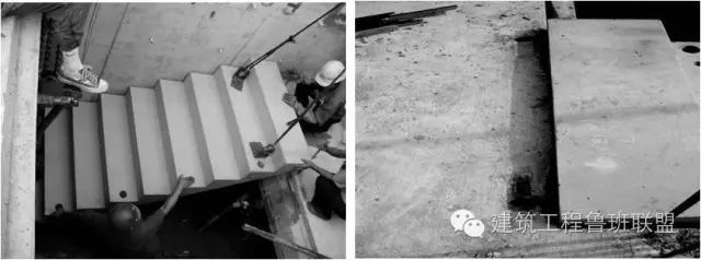 预制楼梯(左)预制楼梯连接处焊接(右)