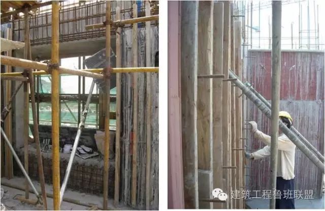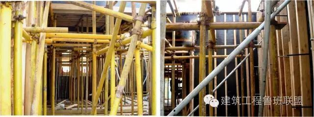 满堂钢管排架(左)剪力墙现场模板(右)