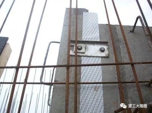 (7)预制构件精调完成后,浇筑砼部位构件拼缝铺贴强粘性的防水绑带,防止在混凝土浇筑时漏浆,见图4-8。