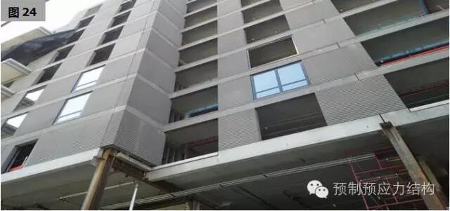 而外墙的使用。混凝土外挂板(图18至26) 也是常用的选择。一般是十到十五公分厚,釆用内保温。因外挂板使得国内要求的连续保温成为可行。使钢结构住宅更像混凝土结构,真正成为百年住宅。