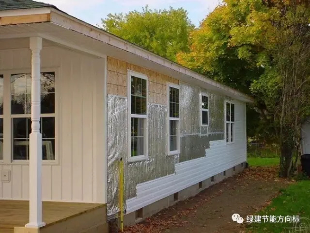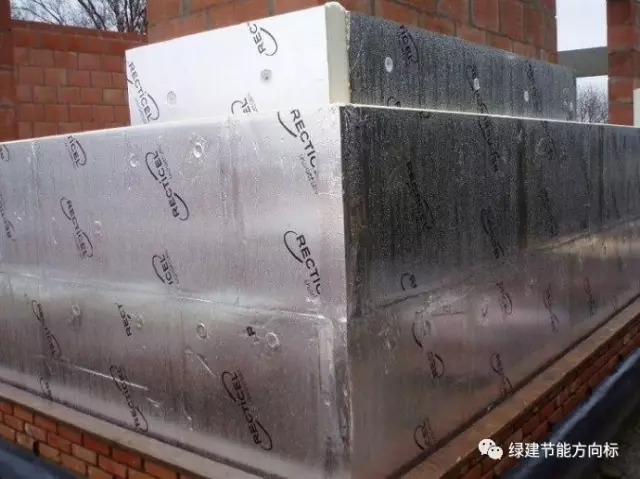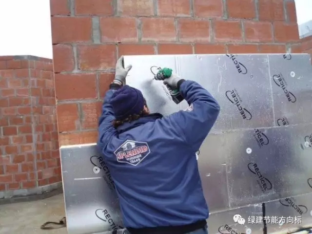 国外很多案例都采用了金属面的聚氨酯复合板。国内你见到很多的都是砂浆覆面的聚氨酯吧,为什么外国人会用金属面呢?这层金属面的作用是热反射,道理很简单,聚氨酯板本身可以起到很好的保温作用,但是我们希望保温板在夏季能起到隔热作用,那么这层金属薄膜就可以发挥作用了。