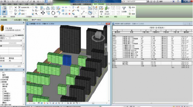 由以上图片可以看出,模型和表格是关联的。小区规划的过程,就是布置各类构建族的过程。各类构建布置完成,相当于各类信息已输入完成。而我们需要的“指标表”,只是用“明细表”功能将自己所需要的信息提取出来而已。这样就做到了无论方案怎么调整,都无需手动计算。