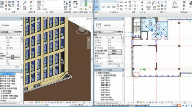 但是Revit强大的三维关联设计,一处修改,处处更新,所有数据源头唯一。让最让设计师头疼的设计修改变得简单,不但大大减少了专业内及专业间对图的时间,也尽量避免了因专业间不一致而造成的变更。做到了“设计一体化”。以下以办公楼项目为例:
