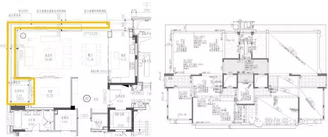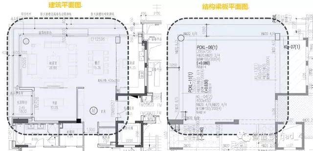户内竖向构件控制在极小范围,实现无梁无柱的大尺度起居空间。客厅面宽9.6米,客厅、餐厅、书房、玄关80㎡的空间无柱无梁,装修空间灵活,可塑性强。少次梁的大板方案可以充分发挥楼板的承载能力,提高结构经性,同时有利于建筑功能的灵活分隔。
