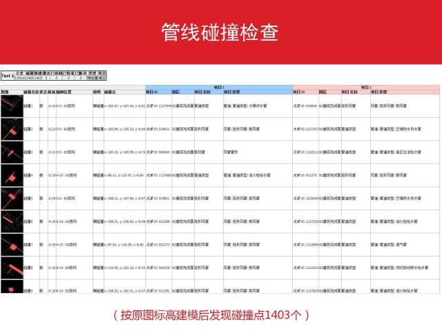 诸如此类的问题还有施工之后发现喷淋管和结构剪力墙碰撞,施工之后发现楼层净高不够;同样的这种碰撞错误也可以统计出来成本,分别是800元和5000元不等。我们分别把碰撞问题分类,并且统计数量,最后得出来的虚拟成本数字是1882万元。这还没有考虑进度延误引起的间接费用、财务费用、管理费用等。