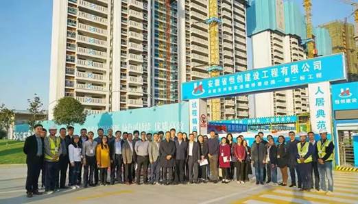 28日下午,50多位与会专家代表,一同前往建筑工业化代表项目——碧桂园张家港尚东名邸参观考察。在SSGF工程师的带领下,专家们走进了张家港尚东名邸的SSGF全天候工地开放现场,依次观摩安全文明走廊、VR体验馆、安全教育培训体验馆、工法样板展示区和项目在建楼层。