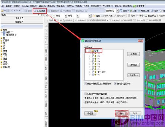 通过广联达土建算量软件的汇总计算功能,汇总模型计算工程量。