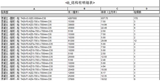 (一)BIM模型在REVIT软件中,利用REVIT软件自带功能生成构件明细表(如图十)