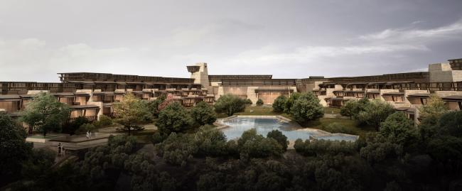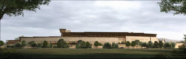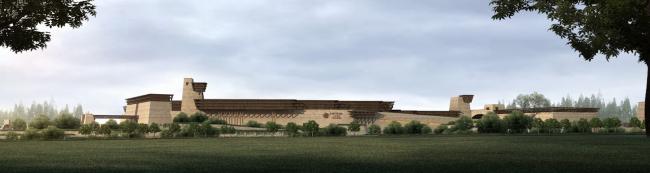 作为一个承办顶级象棋赛事的永久赛址,其基本风貌应与基地的气质相吻合,秉持黄河文明的深厚底蕴,承载中原地区民族文化的当代复兴。整体建筑旨在表达中原文化厚重、雄浑、大气磅礴的内在气质,原生、古朴、挺拔苍劲的外在表象,自然生长在土地上。古城鸿沟的原生地貌,为这场没有硝烟的世纪对决场营造了惊心动魄的氛围。